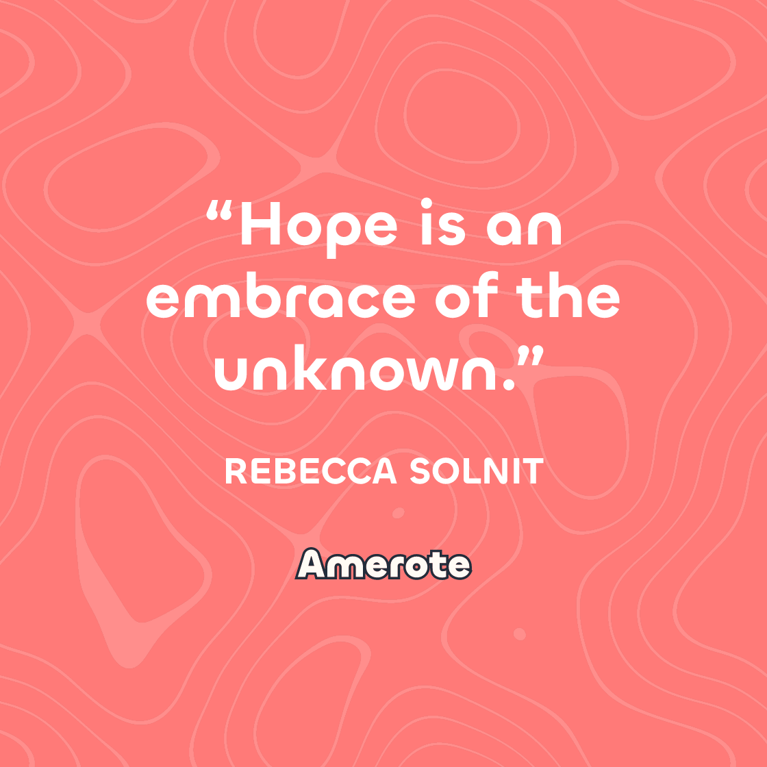 - “Hope is an embrace of the unknown.” — Rebecca Solnit, Hope in the Dark (2004)