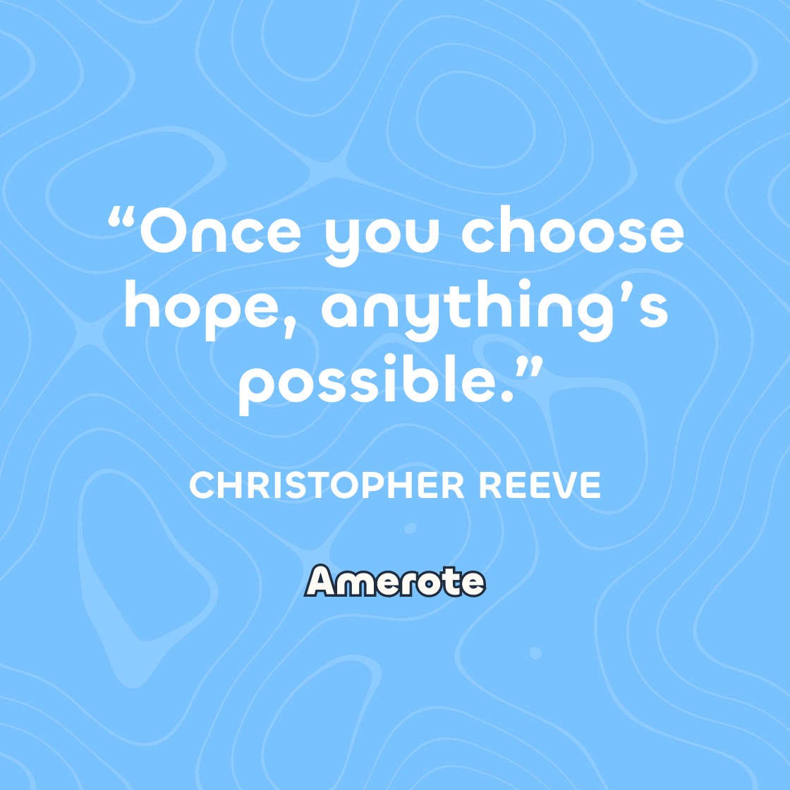 - “Once you choose hope, anything’s possible.” — Christopher Reeve, speech (1998)
