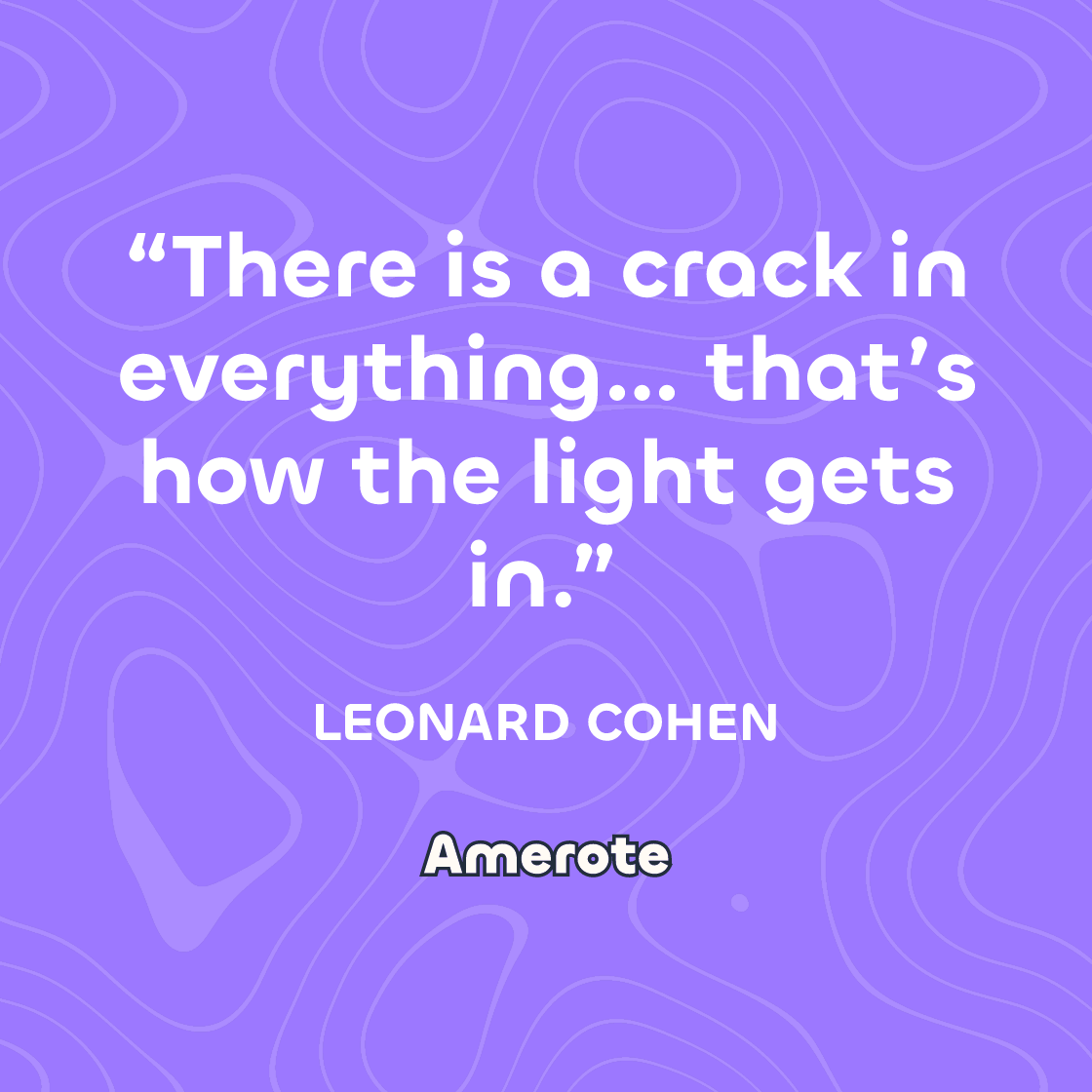 - “There is a crack in everything… that’s how the light gets in.” — Leonard Cohen, “Anthem” (1992 song; lyric under 10 words quoted)