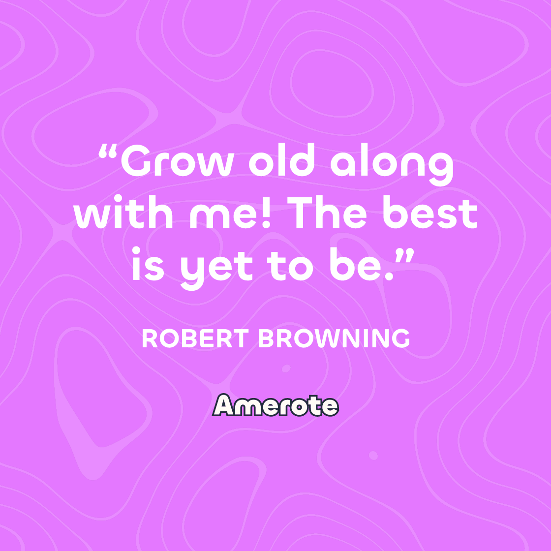 - “Grow old along with me! The best is yet to be.” — Robert Browning, “Rabbi Ben Ezra” (1864)