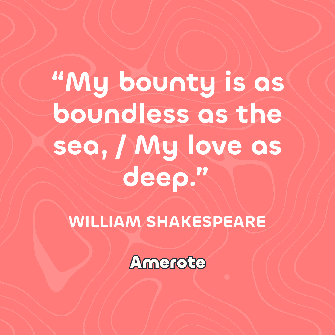 - “My bounty is as boundless as the sea, / My love as deep.” — William Shakespeare, Romeo and Juliet, Act 2, Sc. 2 (c. 1595)