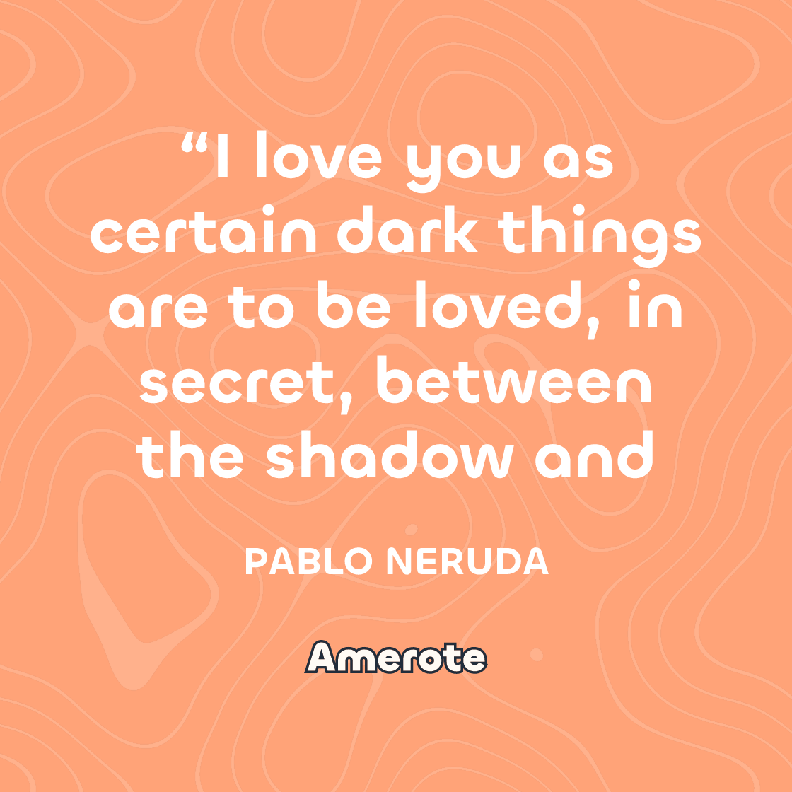- “I love you as certain dark things are to be loved, in secret, between the shadow and the soul.” — Pablo Neruda, Sonnet XVII (1959)