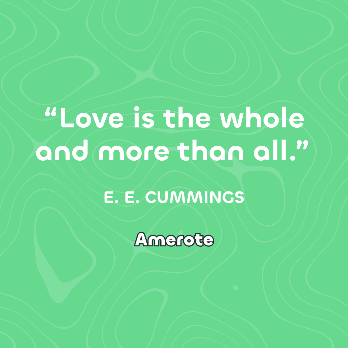 - “Love is the whole and more than all.” — E. E. Cummings, poem (“since feeling is first,” 1926)