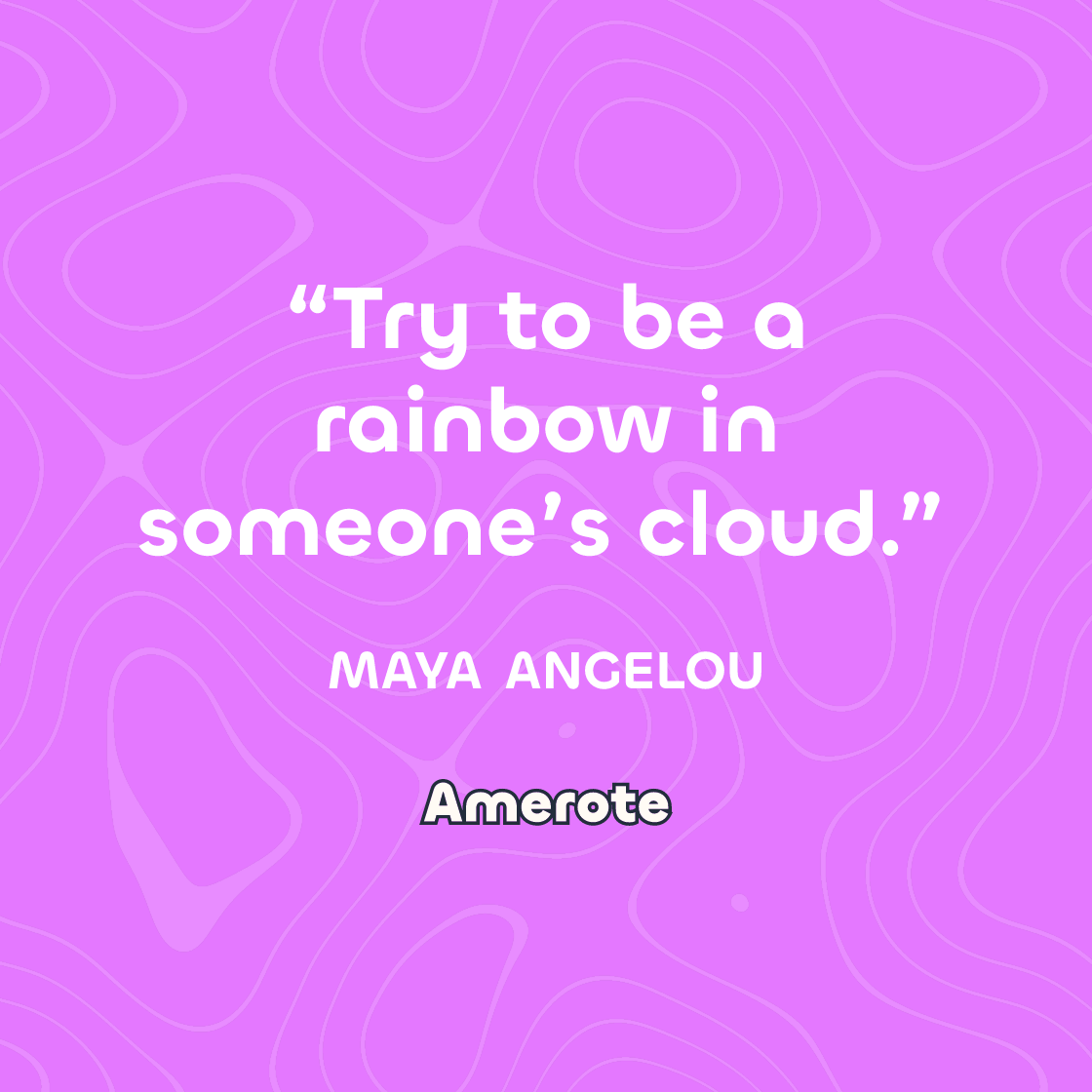 - “Try to be a rainbow in someone’s cloud.” — Maya Angelou, Letter to My Daughter (2008)