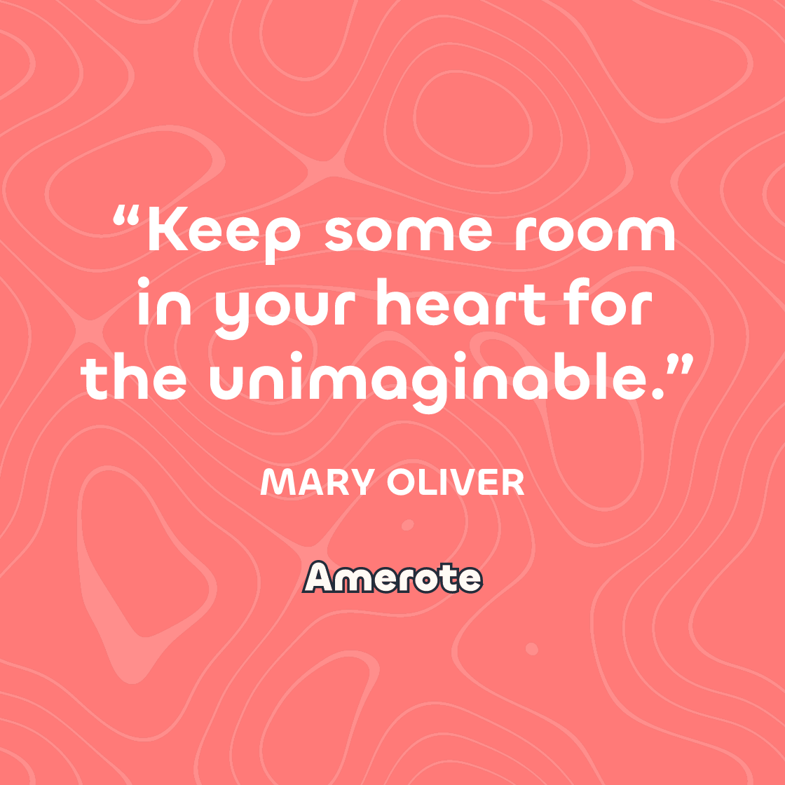 - “Keep some room in your heart for the unimaginable.” — Mary Oliver, Evidence (2009)